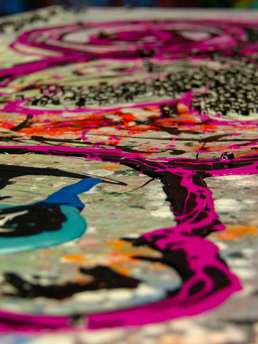Jared Ryan Shaw, a self-taught painter, creates vibrant, unconventional art that invites joy through color and texture. Known for his unique expressionist style using mixed media—like fluorescent paints and glitter—his work reflects his resilience journey after heart surgery and childhood memories. Each piece offers a sensory experience that evokes playfulness and nostalgia.